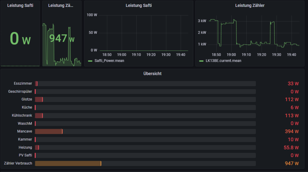 PS: Die Zählersumme auf dem 2ten Panel ergibt nicht die Summe der einzelnen Messwerte. Warum? Nicht alles was da ist wird gemessen, einige Verbraucher liegen auf dem Gelände noch „Out-Of-Wlan-Range“ 🙂